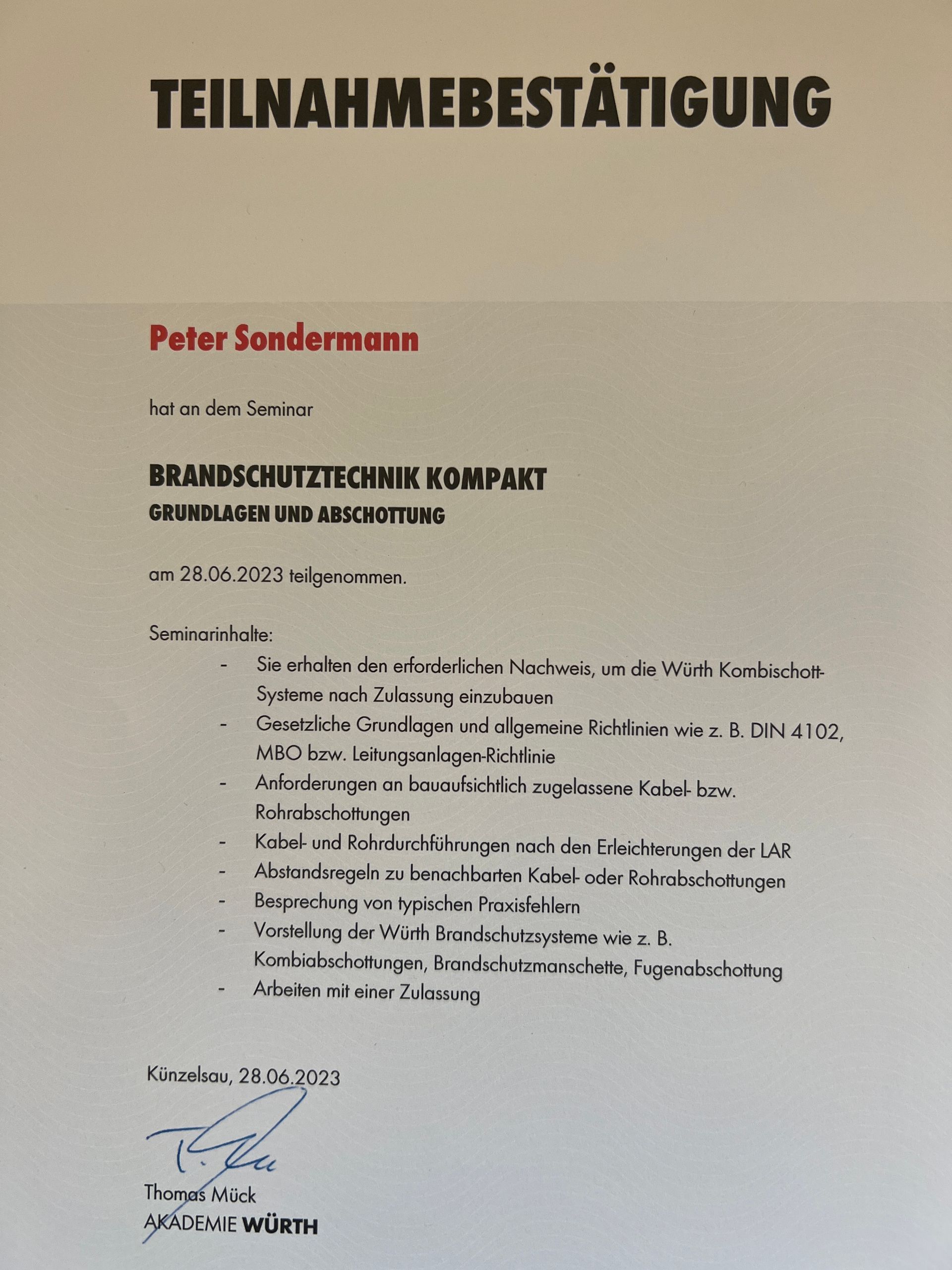 EU-zertifizierter Sachverständiger für den vorbeugenden und gebäudetechnischen Brandschutz nach DIN EN ISO 17024