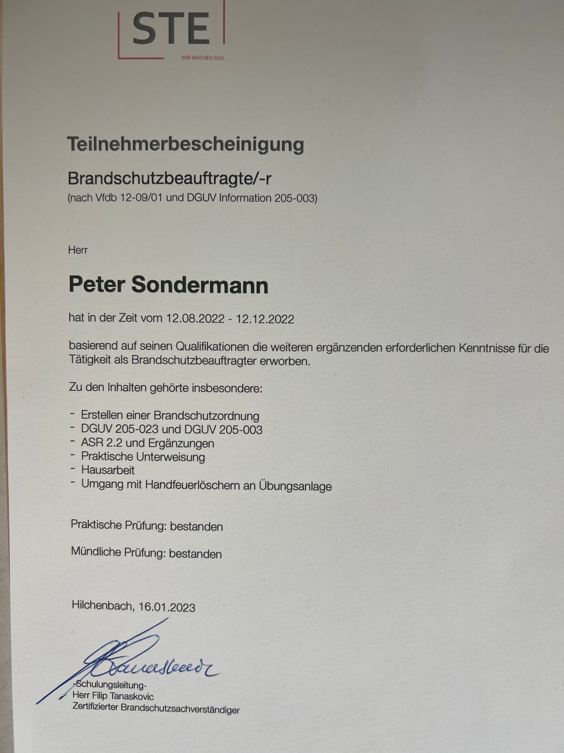 - Tätigkeiten als Brandschutzbeauftragte/er als externes Unternehmen